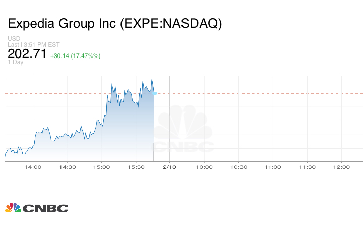 ارتفعت أسهم شركة السفر عبر الإنترنت بنسبة 15% تقريباً بعد أن فاقت نتائج الربع الرابع لشركة Expedia توقعات وول ستريت.
