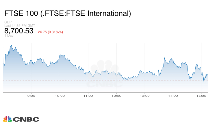وانخفض مؤشر FTSE 100 في لندن بنسبة 0.31%، متراجعاً عن أعلى مستوى له على الإطلاق، في حين قاد مؤشر ستوكس 600 للسيارات والمواد الكيميائية الخسائر القطاعية.