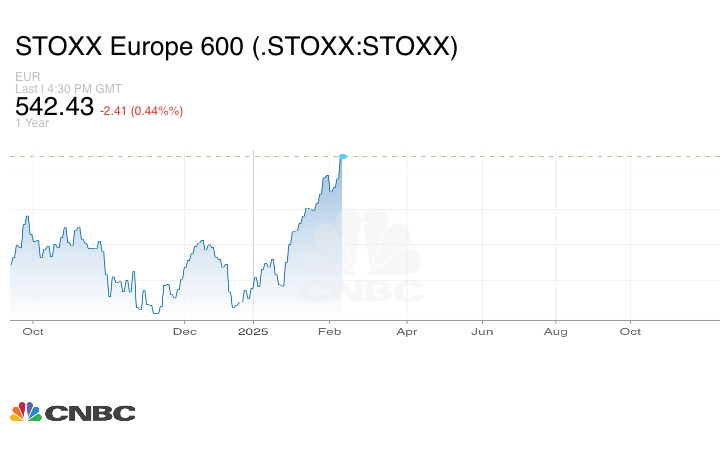 أغلقت الأسهم في أوروبا عند مستوى قياسي مرتفع يوم الخميس، لتمحو خسائرها في وقت سابق من هذا الأسبوع عندما أثارت بدايات الحرب التجارية المحتملة بين الولايات المتحدة والصين توترات في الأسواق العالمية.