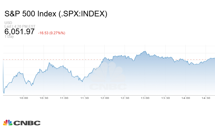 وانخفض مؤشر S&P 500 بنحو 43.4 نقطة أو 0.72% إلى 6025.08 نقطة في بداية التعاملات.