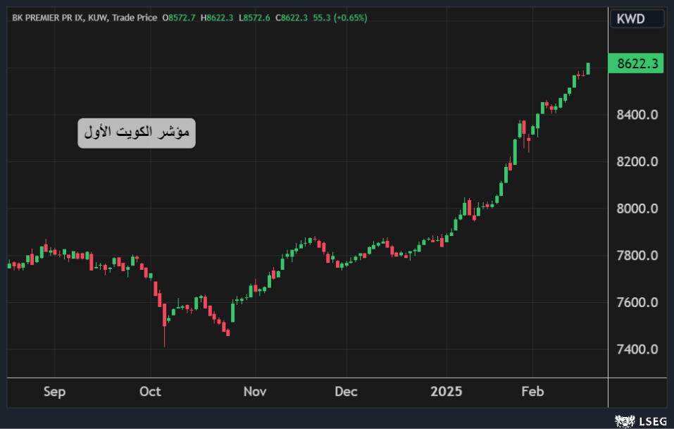 مؤشر الكويت الأول يرتفع لأعلى مستوياته في 30 شهراً