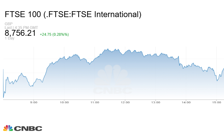 وصعد مؤشر FTSE 100 البريطاني 24.75 نقطة أو بنسبة 0.28% عند الإغلاق إلى مستوى 8756.21 نقطة.