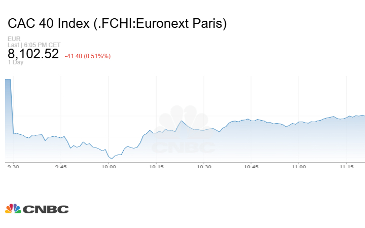 وتراجع مؤشر CAC 40 الفرنسي بنحو 41.40 نقطة أو بنسبة 0.51% عند الإغلاق إلى مستوى 8102.52 نقطة.