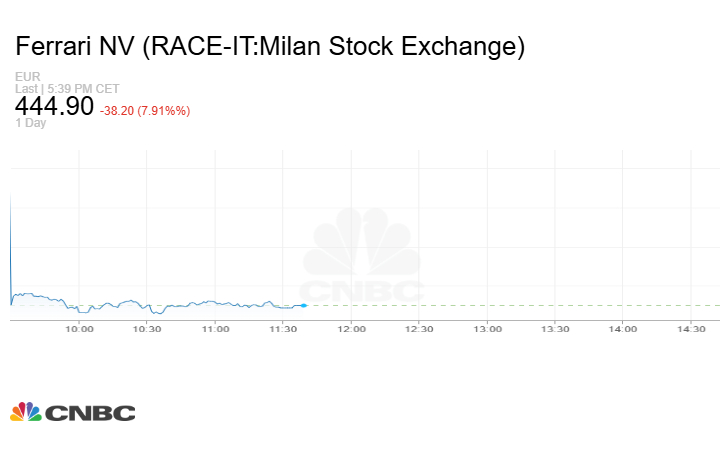 في الوقت نفسه، انخفضت أسهم فيراري Ferrari بنحو 8% بعد أن أعلنت شركة إكسور Exor، الشركة القابضة لعائلة Agnelli الإيطالية، أنها باعت حوالي 4% من حصتها في الشركة.