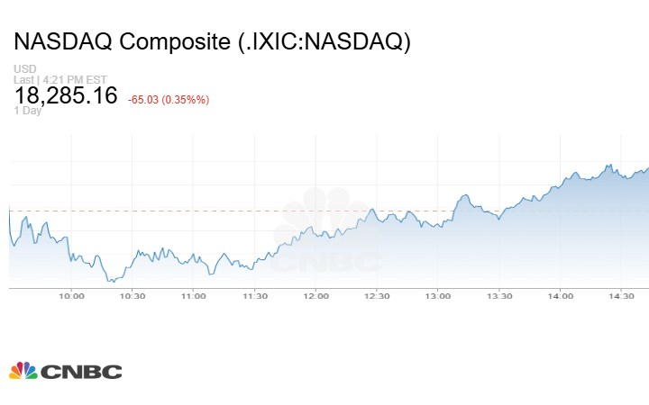 وتراجع مؤشر Nasdaq المركب أيضاً عند الإغلاق بنحو 65.03 نقطة أو بنسبة 0.35% إلى 18285.16 نقطة.
