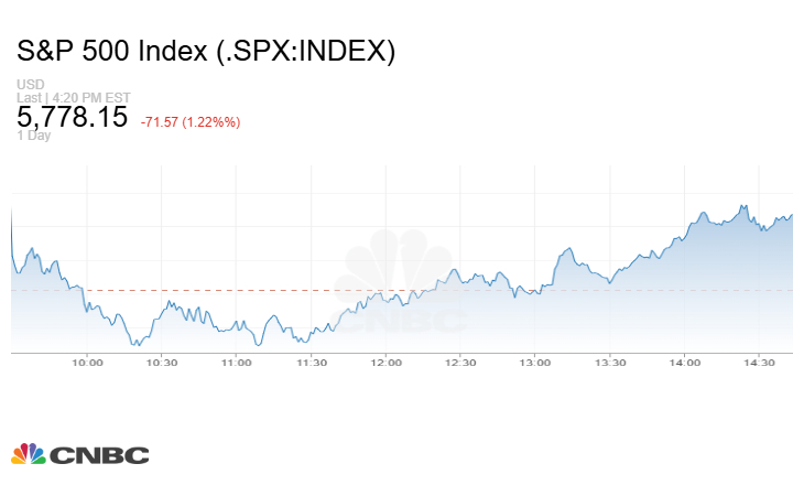 كما أغلق مؤشر S&P 500 التعاملات على هبوط 71.57 نقطة أو بنسبة 1.22% إلى 5778.15 نقطة.