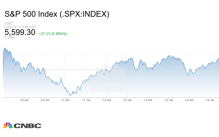 بينما أغلق مؤشر S&P 500 التعاملات على صعود 27.23 نقطة أو بنسبة 0.49% إلى 5599.30 نقطة.