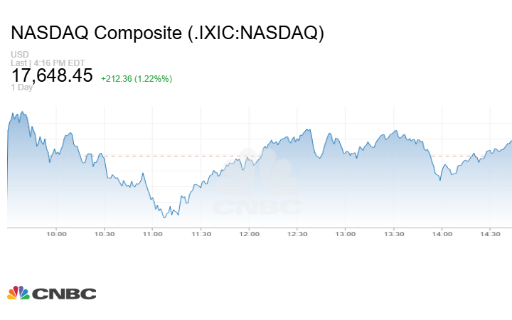 وارتفع مؤشر Nasdaq المركب أيضاً عند الإغلاق بنحو 212.36 نقطة أو بنسبة 1.22% إلى 17648.45 نقطة.