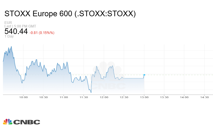 انخفض مؤشر Stoxx 600 الأوروبي 0.81 نقطة أو بنسبة 0.15% إلى مستوى 540.44 نقطة في نهاية التعاملات، مع تباين أداء القطاعات.