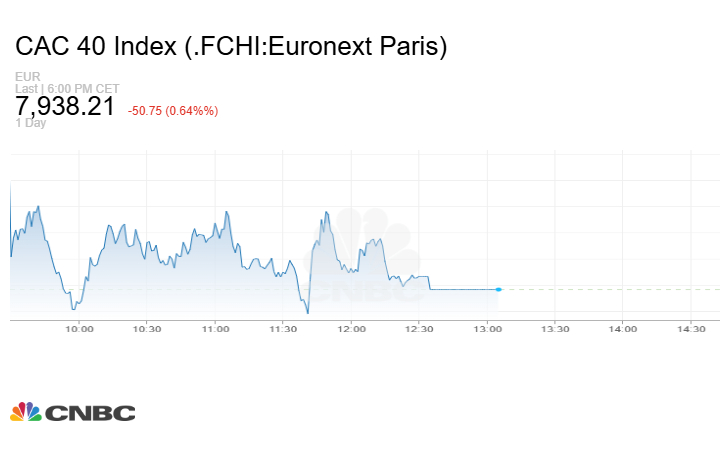في حين تراجع مؤشر CAC 40 الفرنسي بنحو 50.75 نقطة أو بنسبة 0.64% عند الإغلاق إلى مستوى 7938.21 نقطة.