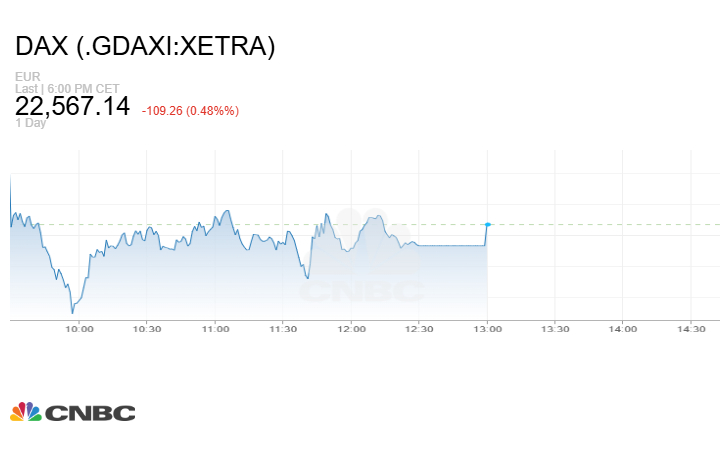 كما أغلق مؤشر DAX الألماني الجلسة على هبوط 109.26 نقطة أو بنسبة 0.48% إلى مستوى 22567.14 نقطة.