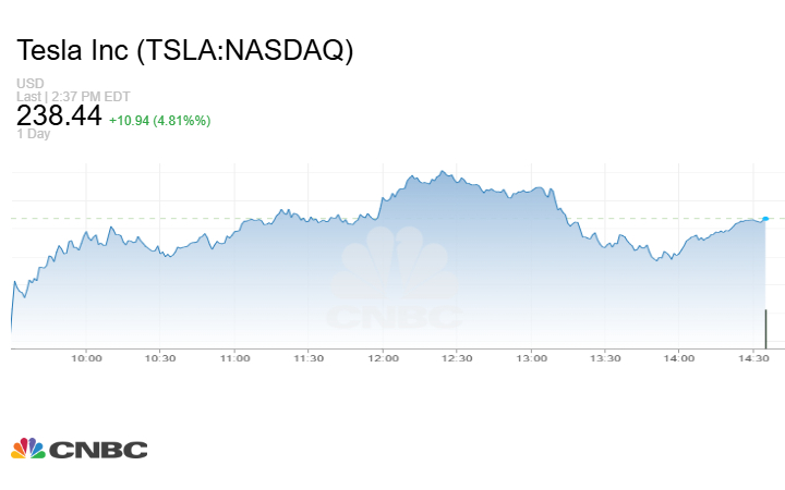 وارتفع سهم الشركة بأكثر من 4% يوم الثلاثاء، بالتزامن مع مكاسب في السوق الأوسع، قبل صدور تقرير أرباح Tesla للربع الأول بعد إغلاق التداول.
