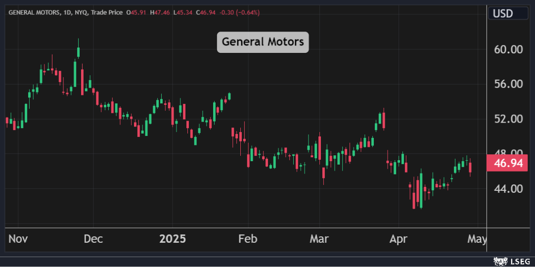 تراجع سهم General Motors بنسبة 0.6% جلسة الثلاثاء متجاهلاً احتمال تخفيف الرسوم الجمركية الأميركية.