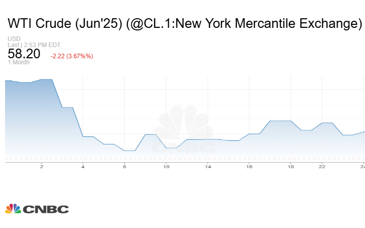 وتراجعت العقود الآجلة للخام الأميركي 2.21 دولار أو 3.66% لتبلغ عند التسوية 58.21 دولار للبرميل، وهو أقل مستوى تسوية منذ مارس/ آذار 2021، بحسب وكالة رويترز.