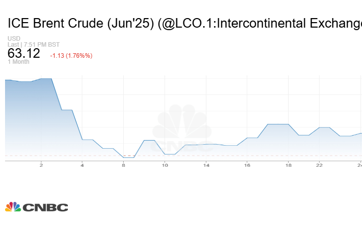 وانخفضت العقود الآجلة لخام برنت 1.13 دولار أو 1.76% لتصل إلى 63.12 دولار للبرميل عند التسوية.
