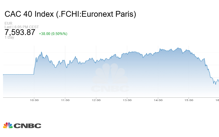 في حين زاد مؤشر CAC 40 الفرنسي بنحو 38 نقطة أو بنسبة 0.50% عند الإغلاق إلى مستوى 7593.87 نقطة. وسجل المؤشر خسائر شهرية بنسبة 2.53%.