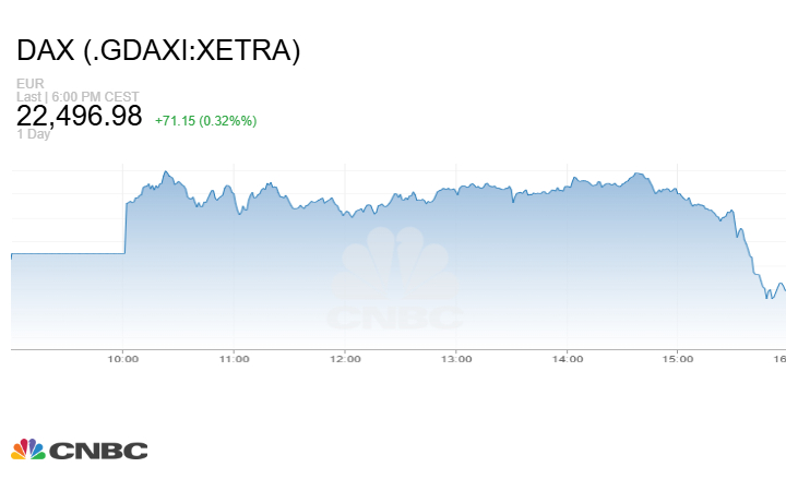 كما أغلق مؤشر DAX الألماني الجلسة على صعود 71.15 نقطة أو بنسبة 0.32% إلى مستوى 22496.98 نقطة. وحقق المؤشر مكاسب شهرية بنسبة 1.5%.