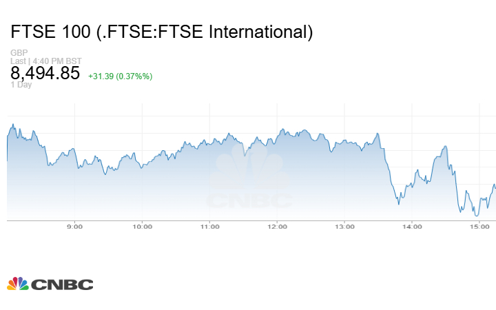 وارتفع مؤشر FTSE 100 البريطاني 31.39 نقطة أو بنسبة 0.37% عند الإغلاق إلى مستوى 8494.85 نقطة. بينما تكبد المؤشر خسائر شهرية بنسبة 1.02%.