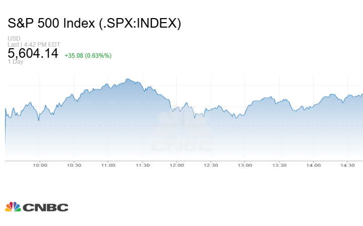كما أغلق مؤشر S&P 500 التعاملات على صعود 35.08 نقطة أو بنسبة 0.63% إلى 5604.14 نقطة.