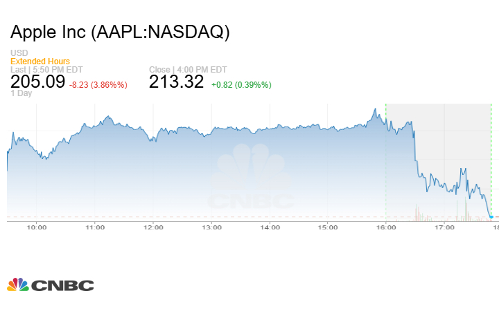 انخفض سهم شركة Apple بأكثر من 3% خلال تعاملات ما بعد جلسة التداول يوم الخميس.