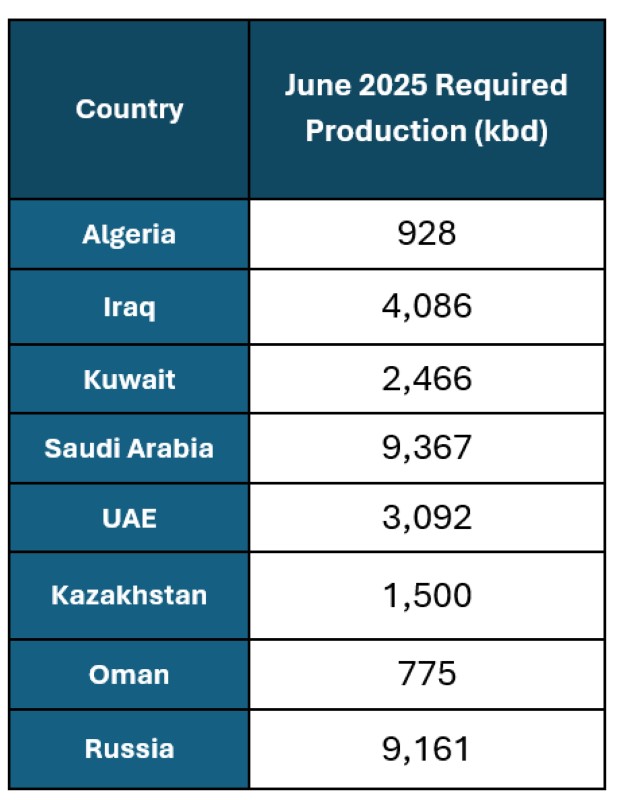 أقرت السعودية وروسيا والعراق والإمارات والكويت وكازاخستان والجزائر وعُمان خلال اجتماع أوبك+ اليوم زيادة في الإنتاج تبلغ 411 ألف برميل يومياً في يونيو.