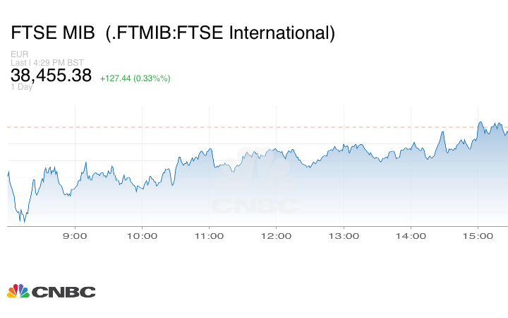 في حين صعد مؤشر فوتسي إم آي بي الإيطالي بنسبة 0.34% إلى 38.456.99 نقطة.