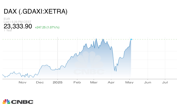 أنهى مؤشر داكس الألماني الجلسة بارتفاع مؤقت بنسبة 1% إلى 23.335.42 نقطة.