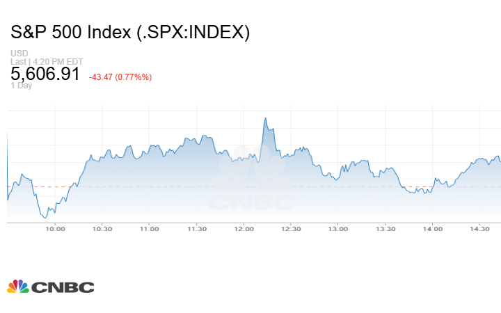 كما أغلق مؤشر S&P 500 التعاملات على هبوط 43.47 نقطة أو بنسبة 0.77% إلى 5606.91 نقطة.