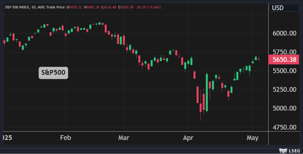 وارتفع مؤشر S&P500 بنسبة 0.4% في جلسة الأربعاء لتصل مكاسبه إلى 13% منذ قاع 7 أبريل.