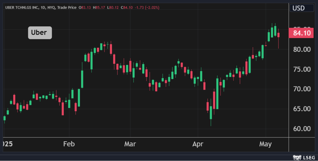 تراجع سهم Uber بنسبة 2.5% في جلسة الأربعاء، ليهبط من أعلى مستوياته في 7 أشهر بعد أن فشلت شركة خدمات نقل الركاب في تحقيق توقعات الإيرادات الفصلية.