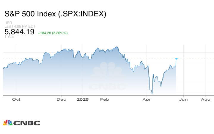 وصعد مؤشر ستاندرد آند بورز 500 بنسبة 3.26%، ليصل إجمالي مكاسبه منذ أدنى مستوى له خلال اليوم في أبريل، في ذروة التشاؤم بشأن الرسوم الجمركية، إلى أكثر من 20%. وقلص المؤشر خسائره منذ بداية العام إلى 0.6% فقط.