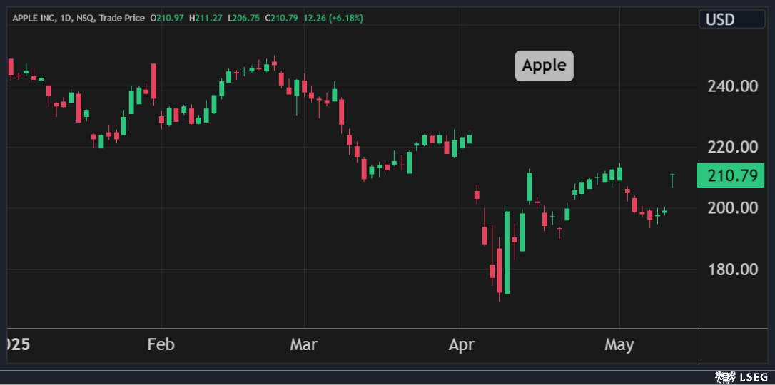 ارتفع سهم Apple بنسبة 6.3% في جلسة الإثنين محققاً أعلى مكاسب يومية في شهر، لتضيف الشركة 188 مليار دولار إلى قيمتها السوقية في يوم واحد.
