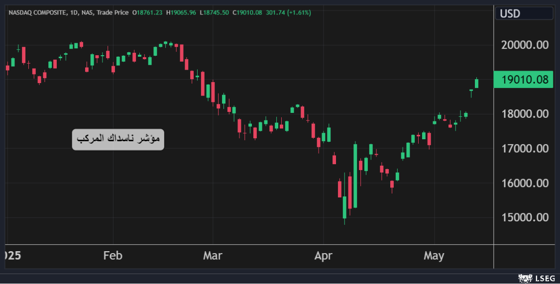 كما قفز مؤشر ناسداك المركب بنسبة 1.6% ليغلق فوق مستويات 19000 نقطة لأول مرة في أكثر من شهرين.