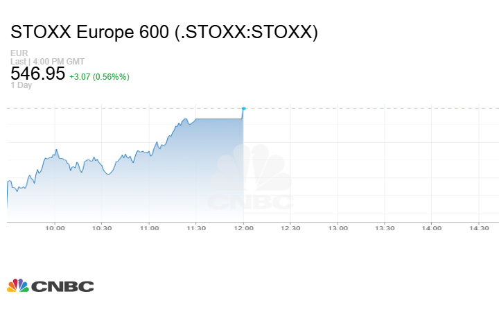 وارتفع مؤشر Stoxx 600 الأوروبي 3.07 نقطة أو بنسبة 0.56% إلى مستوى 546.95 نقطة في نهاية التعاملات.