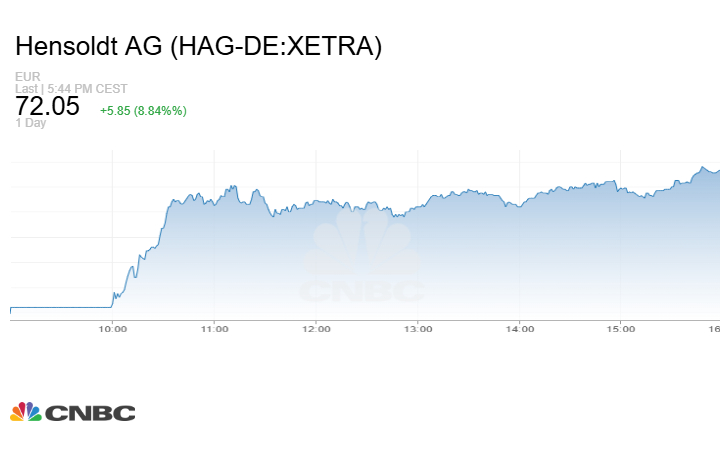 وارتفع سهم شركة هينسولدت Hensoldt للصناعات الدفاعية بنسبة 8.8% وسط مكاسب أوسع نطاقاً في القطاع، بعد أن أعلن وزير الدفاع الألماني الجديد دعمه لدعوة الرئيس الأميركي دونالد ترامب للدول الأعضاء في حلف شمال الأطلسي "الناتو" إلى تخصيص 5% من ناتجها المحلي الإجمالي للإنفاق الأمني.