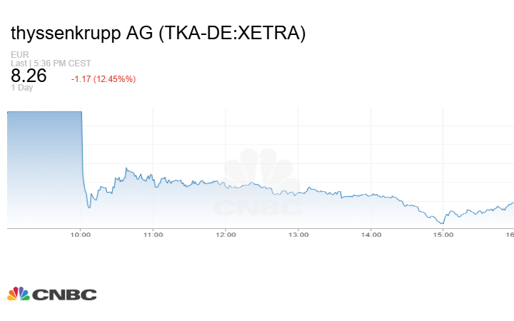 في المقابل، انخفض سهم شركة تيسينكروب Thyssenkrupp الصناعية العملاقة بنسبة أكثر من 12% بعد أن خيبت نتائج أعمالها آمال السوق.