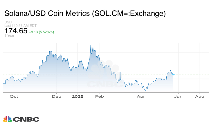وصعدت عملة سولانا بنسبة 5.52% إلى 174.64 دولار.