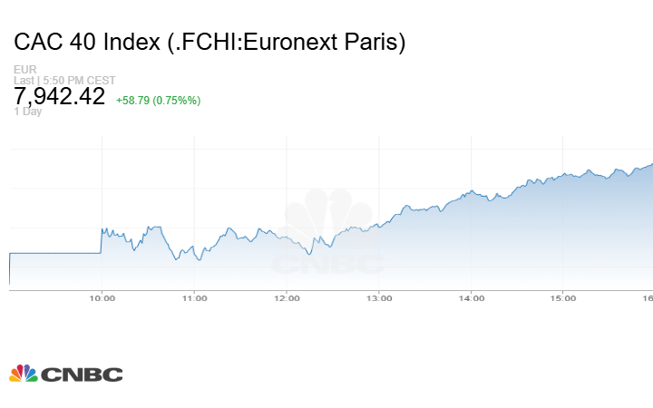 في حين ارتفع مؤشر CAC 40 الفرنسي بنحو 58.79 نقطة أو بنسبة 0.75% عند الإغلاق إلى مستوى 7942.42 نقطة.