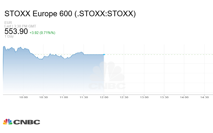 وارتفع مؤشر Stoxx 600 الأوروبي 3.92 نقطة أو بنسبة 0.71% إلى مستوى 553.90 نقطة في نهاية التعاملات.