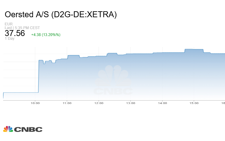وصعدت أسهم شركة دبلوما بي إل سي Diploma، مورد المنتجات الصناعية، وشركة أورستيد Orsted الدنماركية لطاقة الرياح، بنسبة 15% و13% على التوالي.