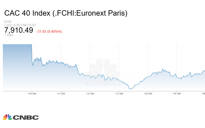 في حين هبط مؤشر CAC 40 الفرنسي بنحو 31.93 نقطة أو بنسبة 0.40% عند الإغلاق إلى مستوى 7910.49 نقطة.
