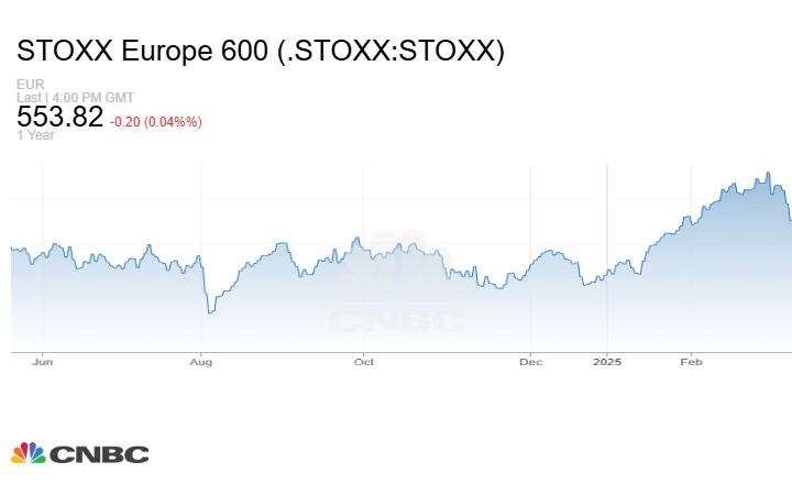 وانخفض مؤشر Stoxx 600 الأوروبي 0.20 نقطة أو بنسبة 0.04% إلى مستوى 553.82 نقطة في نهاية التعاملات.