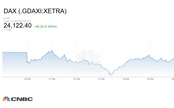 بينما أغلق مؤشر DAX الألماني الجلسة على صعود 86.29 نقطة أو بنسبة 0.36% إلى مستوى 24122.40 نقطة.