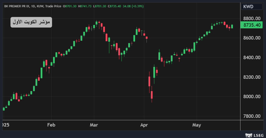 ارتفع مؤشر الكويت الأول بنحو 0.4% في جلسة الأربعاء بعد 3 جلسات متتالية من الخسائر بدعم من ارتفاع سهمي طيران الجزيرة وبنك الكويت الوطني بنسبة 1.5% و0.7% على التوالي.