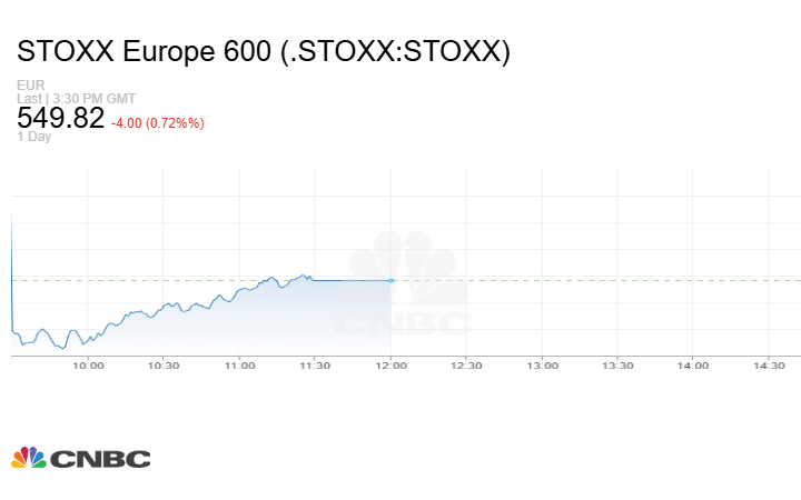 وانخفض مؤشر Stoxx 600 الأوروبي 4 نقاط أو بنسبة 0.72% إلى مستوى 549.82 نقطة في نهاية التعاملات.
