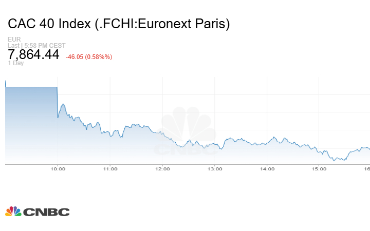 في حين هبط مؤشر CAC 40 الفرنسي بنحو 46.05 نقطة أو بنسبة 0.58% عند الإغلاق إلى مستوى 7864.44 نقطة.