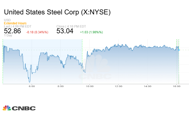 وارتفع سهم U.S. Steel بنحو 2% يوم الثلاثاء ليغلق عند 53.04 دولار للسهم. وارتفع السهم بأكثر من 20% يوم الجمعة على خلفية إعلان موافقة ترامب على الصفقة.