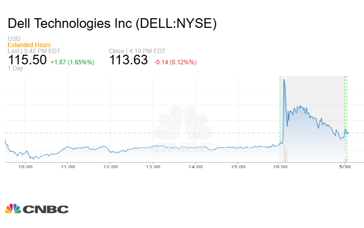 ارتفعت أسهم شركة ديل تكنولوجيز Dell Technologies، يوم الخميس 29 مايو/ أيار، خلال تعاملات ما بعد جلسة التداول، بعد أن رفعت الشركة توقعاتها لأرباح العام بأكمله، وأصدرت توقعات أفضل من التقديرات للربع الحالي.