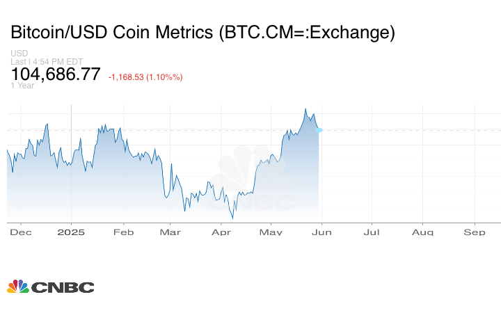 كان سعر بتكوين يحوم حول 108.000 دولار أميركي. ويأتي هذا الانخفاض بعد وقت قصير من تسجيل بتكوين أعلى مستوى قياسي جديد له على الإطلاق، متجاوزاً 111.000 دولار أميركي، في 22 مايو.