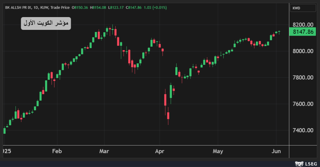 ارتفع مؤشر الكويت الأول بنسبة طفيفة بلغت 0.01% في جلسة الإثنين مع ارتفاع سهم بنك وربة بنسبة 3.5% مقابل انخفاض السهمين القياديين "الوطني" و"بيتك" بنسبة 0.3% و0.1% على التوالي.